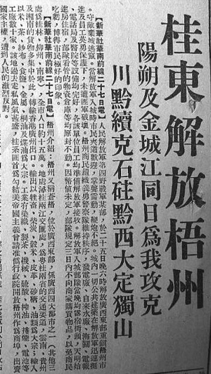 報紙報道梧州解放的新聞。