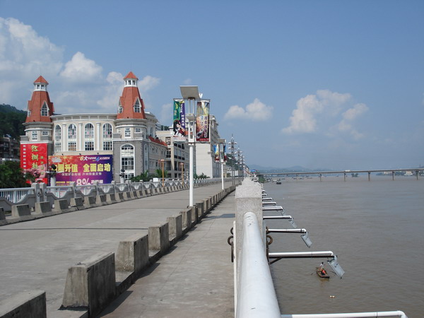 沿著河東防洪堤西江段堤墻內,就是有“梧州外灘”之稱的鴛江麗港。鴛江麗港是梧州首席集城市旅游、購物、娛樂、飲食、觀光休閑、商務“一站式”主題大型購物樂園,由番山集團(香港)有限公司于2003年投資5億元興建。鴛江麗港占地面積約8萬平方米,總建筑面積14萬平方米,位于梧州市河東商圈最繁華的商業黃金地段上,有六堡茶城、星級酒店、娛樂一條街、飲食一條街、土特產一條街。在這1.895公里長的臨江堤岸,堤外西江波光粼粼,堤內各種歐陸風情式樣的建筑錯落有致,形成別具一格的以建筑、筑群園林、廣場、商業區、活動區、商務區等共同構建的沿江風情畫廊。鴛江麗港成了著名的“梧州外灘”。
