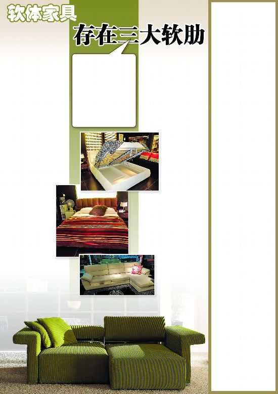 ????所謂軟體家具就是沙發和床等具有一定柔軟度的家具,最近我們發現,這一類家具中的某些不合格品存在“軟肋”。