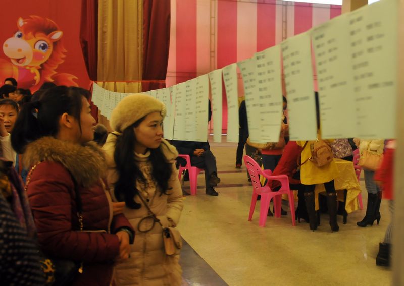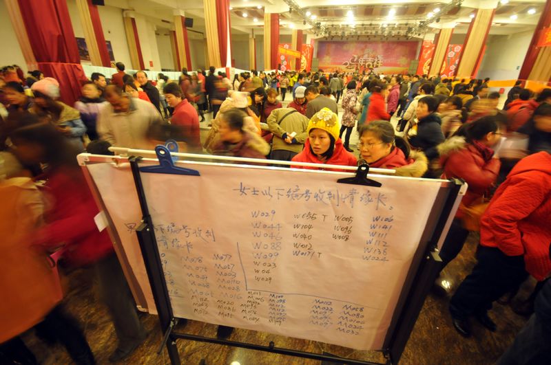 ????今年60多歲的肖阿姨戴著眼鏡,將場上合適的資料都看了個遍,還抄錄了六七個心儀的單身男性資料供女兒挑選。“女兒今年已30歲,但自25歲一次短暫的異地戀后就未有合意的對象。”肖阿姨說,眼看女兒年紀越來越大,家里人也越來越著急,“我們催得多了,女兒就說,‘要不隨便找個吧’。可是婚姻大事怎么能將就,我們也就參與進來幫她找。我今天來這里是瞞著她的,有合適的再跟她說。”