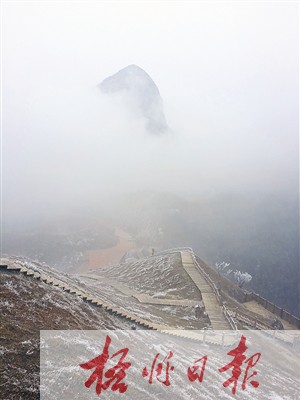 登上龍脊,我們實則在體會了一回騎龍游天。行走在龍脊上,游目俯視,腳下群山碧波浪涌,蒼茫一片如若妙手筑就的盆景。頂端石徑僅容一人徐步,兩側欄桿下面,深達七百多米的峭壁懸崖,令人如浮虛空。一陣天風掠過,移步飄搖,頓生駕龍騰飛,羽化登仙的幻覺。但此刻一看身外蒼茫空虛,浮蕩天宇,你絕對害怕升仙,只愿意腳踏實地移步回歸人阛。雖然龍脊凌空,山道險峻,卻一路跌宕蜿蜒,曲徑通幽,兩旁灌木夾道叢生,根基咬緊崖壁,給行人設置了天然屏障。行進中時見叢木扶疏,給人遮擋恐懼;或者根須縱橫,讓人攀援行走;時入竹林連墻的青帳,一片安定綠洲。從龍脊下來,大家都有“三軍過后盡開顔”的慨嘆,而又禁不住一番回味天龍頂的驚險奇趣。