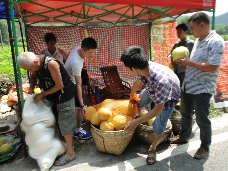9月7日,在蒙山縣黃村鎮新開村,果農把剛采摘紅肉蜜柚過秤銷售。據悉,紅肉蜜柚是從臺灣引進的柚子新品種,蒙山縣黃村鎮新開村種植有70多畝,今年開始掛果。隨著中秋節到來,有不少客商到果園選購紅肉蜜柚。江永錄 攝