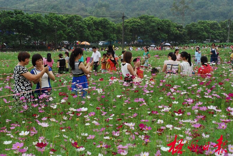 ?10月1日,在蒙山縣蒙山鎮北樓村,游客在格桑花田里觀賞、拍照。 據悉,蒙山縣精心打造農業觀光項目,培育格桑花、葵花種植基地,國慶假期正值盛花期,吸引了眾多游客前來觀賞游玩。黃海峰 攝