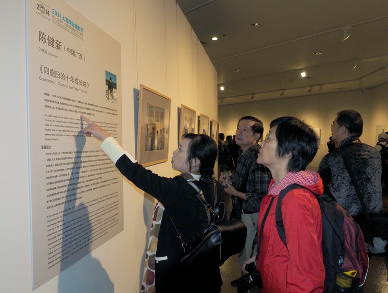 ???? 2014上海國際攝影節(jié)國際邀請展10月13日至19日在上海中華藝術(shù)宮舉行,梧州日報(bào)攝影記者陳健新的攝影專題作品《四胞胎的十年成長路》入選其中,并在為期一周的攝影節(jié)的展覽上,與入選的42名國內(nèi)外攝影大師的作品一同展出。據(jù)了解,本屆國際攝影邀請展征稿推行由國際攝影機(jī)構(gòu)、著名策展人的策展制,公開向世界攝影人廣泛征集。共有22個(gè)國家的攝影人參與投稿,收到專題攝影作品共計(jì)17413幅。 邱怡 攝影報(bào)道 |