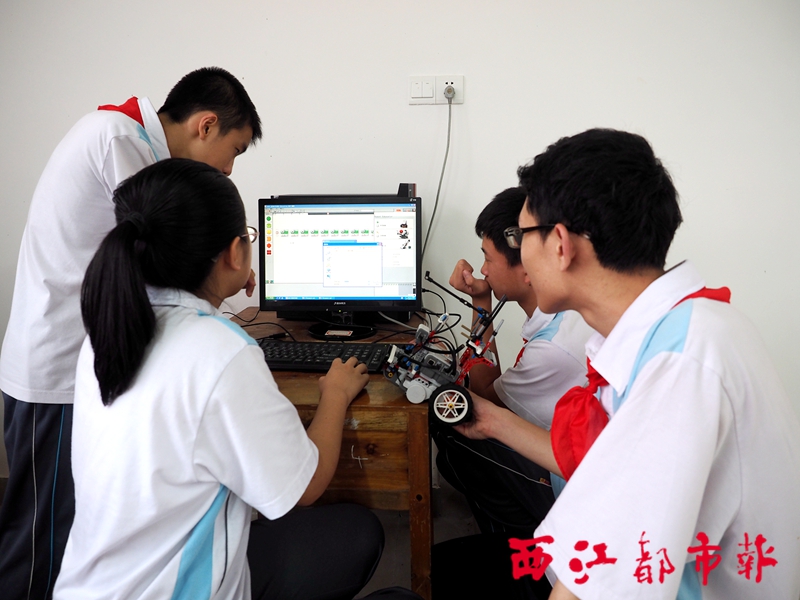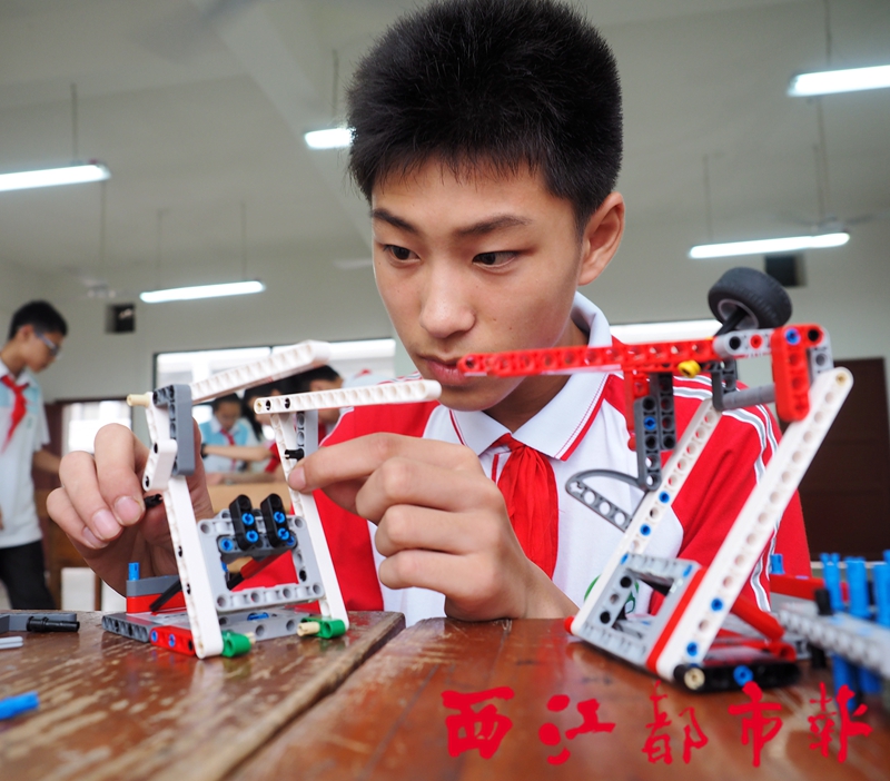 ????已離開機器人興趣小組的畢業班學生唐沈洋和歐卓健雖然忙于中考復習,但仍會在下午放學或者周末抽空跑到科技活動室過把癮,并向學弟學妹傳授自己的經驗。他們說,等考上高中,他們還會繼續加入學校的機器人興趣小組。