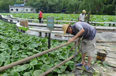 潘塘公園蓮花池汀步兩旁安裝護欄