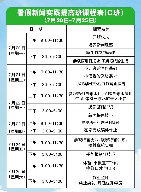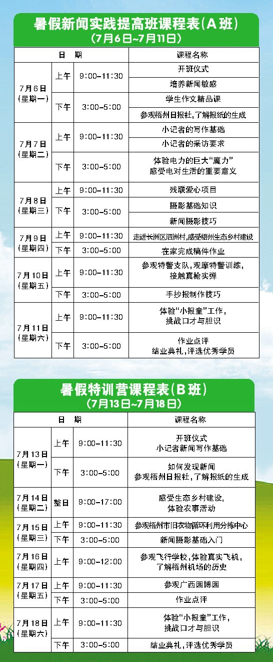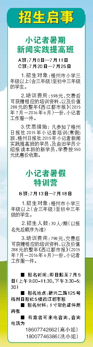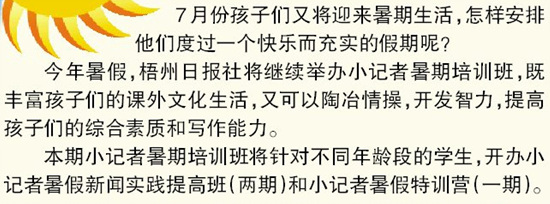 梧州日版社小記者暑假新聞實踐提高班招生啟事