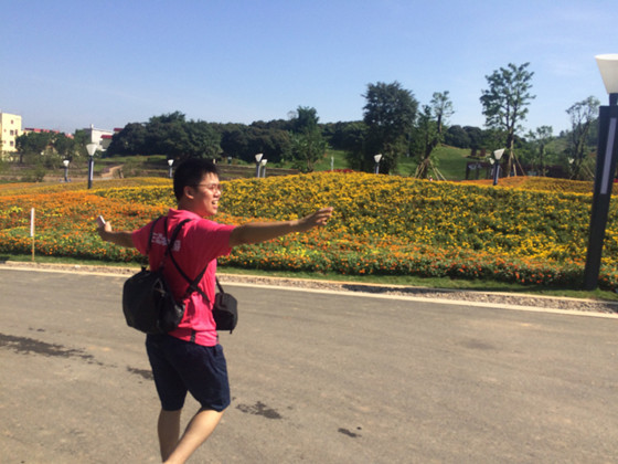 剛出梧州園,先遣團(tuán)一行陸續(xù)進(jìn)入河池園、玉林園、賀州園等園區(qū)踩點(diǎn)。藏寶人再次玩神秘,撇下眾人獨(dú)自游覽,卻游得不安分。這會到河池園的斗笠民俗墻東翻翻西敲敲,那會又到玉林園那仿原始叢林的人造天橋上走走,或是流連園博園廣場漫山遍野的花海,久久不肯離開。