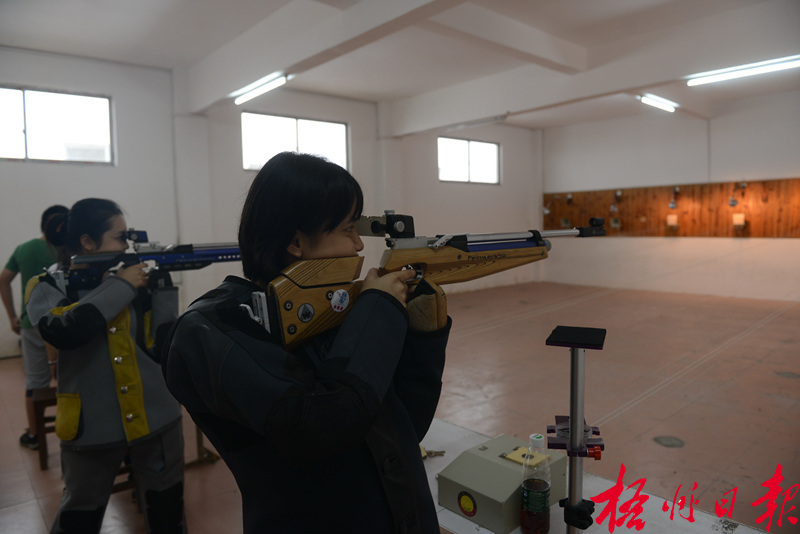 7月23日,在市跳水游泳射擊訓練館,選手正在進行十米氣步槍射擊訓練。