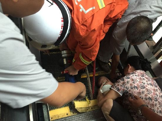 ????據太陽廣場工程部一名工作人員介紹,當時他們就在附近巡場,聽到哭聲后忙趕往現場,看見小孩被卷進電梯,忙用工具將扶手梯撬松,減緩小孩痛苦,并派人通知消防人員,叫救護車。很快,消防官兵趕至現場救援,當時正在現場的朱小姐告訴記者,小孩救出后,整個左手手臂血肉模糊,并被立即送往紅會醫院救治。