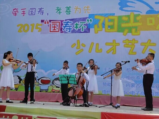 由中國人壽梧州分公司與梧州人民廣播電臺聯合舉辦的2015“牽手國壽 孝善為先” 第二屆陽光哆來咪少兒綜合才藝比賽于8月18日—8月20日分別舉行樂器組、歌舞組比賽。8月22日在梧州市鴛江麗港表演舞臺舉行樂器組、歌舞組以及市級書畫類一、二、三等獎頒獎典禮。