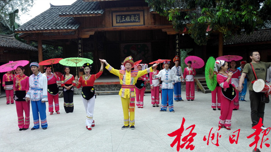 ????2015年5月底,我們來到風(fēng)光旖旎的劉三姐故里景區(qū),看不盡的山歌迎賓和壯族風(fēng)情表演、斗歌實景演出、歌王擂臺,我們還變身劉三姐和莫老爺、秀才們斗歌,以及歌王現(xiàn)場編歌表演,并品嘗特色美食——長桌宴。