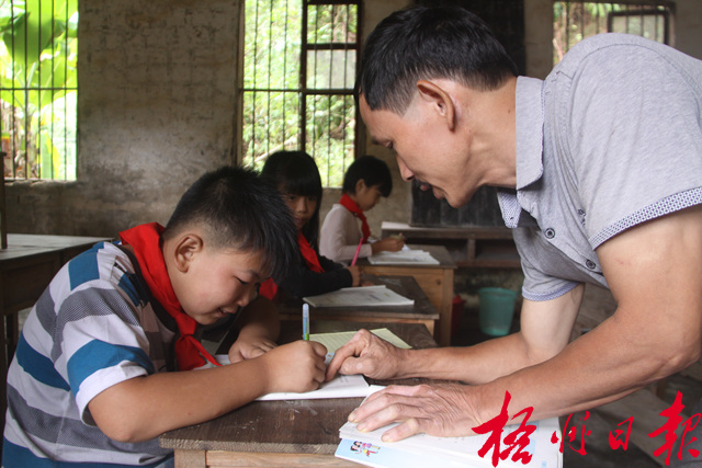 ????胡偉告訴筆者,1994年,他被縣里聘請(qǐng)為一名代課老師,在天平鎮(zhèn)新大村小學(xué)木棉分校任教。2001年,尖刀分校唯一的一名老師調(diào)走了,學(xué)校面臨停學(xué)窘境。胡偉主動(dòng)請(qǐng)纓,愿意來到離家更遠(yuǎn)的尖刀分校任教,而這光桿“孩子王”一當(dāng)就是14年。