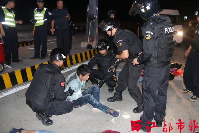 ????“我們剛到達現場不到十分鐘,一輛掛著桂P牌照的大客車就從羅定方向往收費站駛來,車輛跟事先通報的特征完全吻合?!贬泄簿址辣嘘犆窬盒聵s回憶,在確定嫌疑人所乘車輛后,由于嫌疑人很有可能攜帶有槍支,參戰民警精神瞬間高度緊張起來,迅速上前對車輛進行了攔截和控制。隨后,民警把大客車引導到檢查區域,全副武裝上車檢查,把車上人員逐一控制帶下車輛,與廣東羅定市警方設卡攔截民警聯合核查身份。