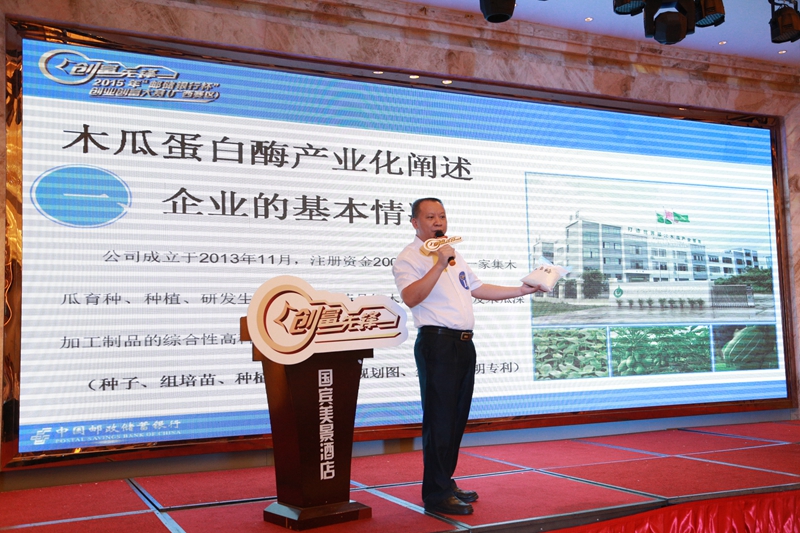 ????經過選手們激烈的比拼,最終廣西大果山楂農業開發有限公司帶來的“雪梨型大果山楂產業化項目”獲得創業組的金獎,廣西宏美農業科技有限公司帶來的“木瓜蛋白酶產業化項目”斬獲創富組金獎,分別獲得由郵儲銀行廣西分行提供的500萬元、2000萬元授信大獎。