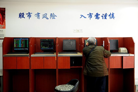 1月4日,一位股民在鄭州一證券交易所觀看股市行情。(新華社發)