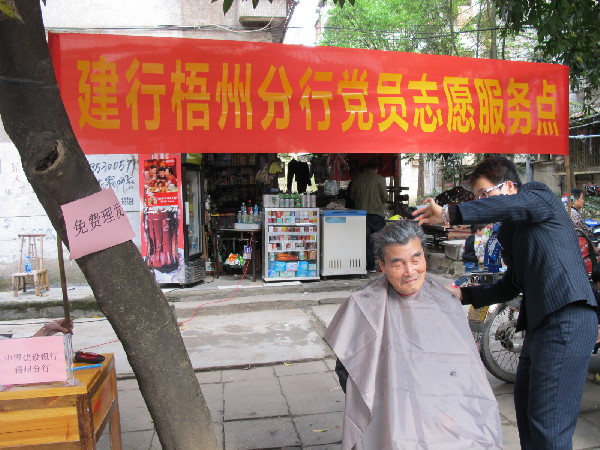 建行梧州分行黨員志愿者們向市民群眾發放反假貨幣、建行購車分期、快貸等宣傳資料,通過簡明易懂的語言向社區居民進行講解,現場指導群眾鑒定假幣,提高了群眾對建行品牌和業務的認同度。第三黨支部的小程自學理發手藝,活動中免費為群眾義務理發,不多時就讓理發者面貌一新,讓社區群眾享受到惠民服務,得到社區群眾的贊揚。