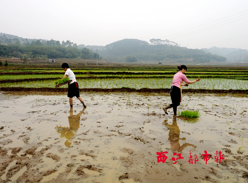 ??? 4月1日,藤縣金雞鎮旺國村四組的村民在田頭忙著拋秧。清明前后,正是春插播種的季節,連日來,梧州市各鄉鎮的村民紛紛抓緊時間進行春插和田間管理。 西江都市報記者 陳健新/攝
