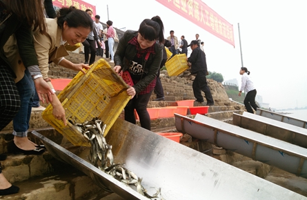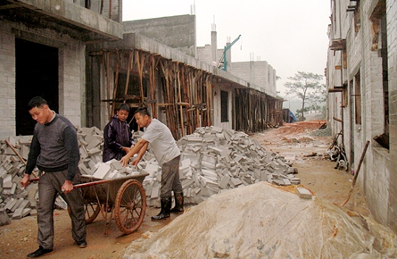 ????3月27日,在桂江一橋河西橋頭,施工人員清理剛拆除的廣告牌。