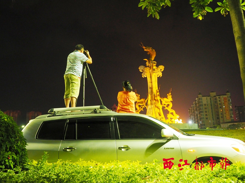 ????近日的一天晚上,盡管夜色已深,但從廣東茂名高州市駕車來到梧州的陳紹武夫妻,經過玫瑰湖公園前的魚化龍雕塑時,一下子就被夜燈照耀下的栩栩如生的雕塑所吸引。顧不上旅途的疲憊,夫妻倆馬上選好合適的位置停車,并在車頂架起三腳架,用相機記錄下這一刻的美景。而為了能拍到日出時朝霞映照下的魚化龍騰空而躍的景象,陳邵武決定當晚就睡在車上,凌晨4點就起來拍下這個瞬間畫面。