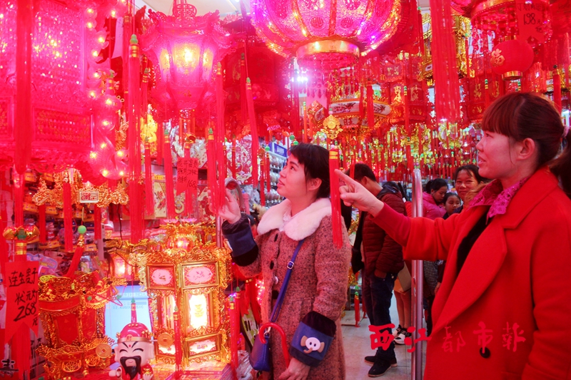 ?2月4日,在岑溪市一家花燈店內,市民正在選購花燈。農歷正月初十,是岑溪一年一度特有的民俗節日——上燈節,隨著節日的來臨,花燈迎來了銷售高峰,各種款色的花燈讓人眼花繚亂,將整個市場點綴得紅紅火火。 吳家寧 攝