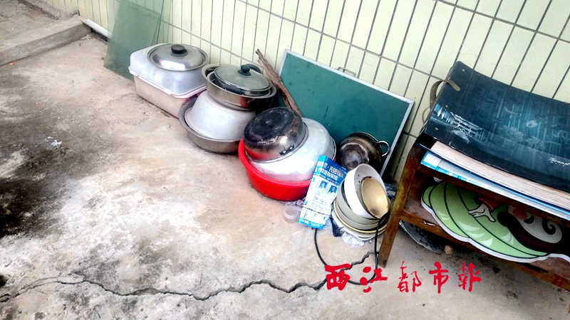 ????崩山西五級10號居民房的屋主陽先生稱,他家門前空地的裂縫是從去年年初開始出現(xiàn)的,后來裂縫不斷延伸到房屋主體的邊緣,現(xiàn)在門前的空地與房屋已經(jīng)被拉裂開來。“旁邊的11號居民房裂縫開裂的程度比較大,這一戶居民已經(jīng)搬離到別處居住,現(xiàn)在11號居民房已經(jīng)向后傾斜。”陽先生說,這一帶的幾間居民房都出現(xiàn)了開裂,估計與坡下出現(xiàn)的地質(zhì)災(zāi)害有關(guān)。