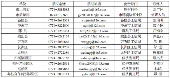 關(guān)于公布梧州市嚴(yán)防“地條鋼”死灰復(fù)燃舉報(bào)熱線和郵箱的通告 根據(jù)國家發(fā)改委、工業(yè)和信息化部等23部委《關(guān)于做好嚴(yán)防“地條鋼”死灰復(fù)燃有關(guān)工作的通知》(發(fā)改產(chǎn)業(yè)〔2017〕2306號(hào))和自治區(qū)嚴(yán)厲打擊和取締“地條鋼”工作領(lǐng)導(dǎo)小組辦公室《關(guān)于開展嚴(yán)防“地條鋼”死灰復(fù)燃大排查工作的通知》(桂發(fā)改工業(yè)〔2018〕135號(hào))精神,為鞏固我市取締和打擊“地條鋼”成果,保持打擊“地條鋼”的高壓態(tài)勢(shì),按照有關(guān)通知要求,我市在各縣(市、區(qū))和園區(qū)設(shè)立了嚴(yán)防“地條鋼”死灰復(fù)燃舉報(bào)電話和舉報(bào)郵箱。現(xiàn)予以公布,歡迎社會(huì)各界參與監(jiān)督。