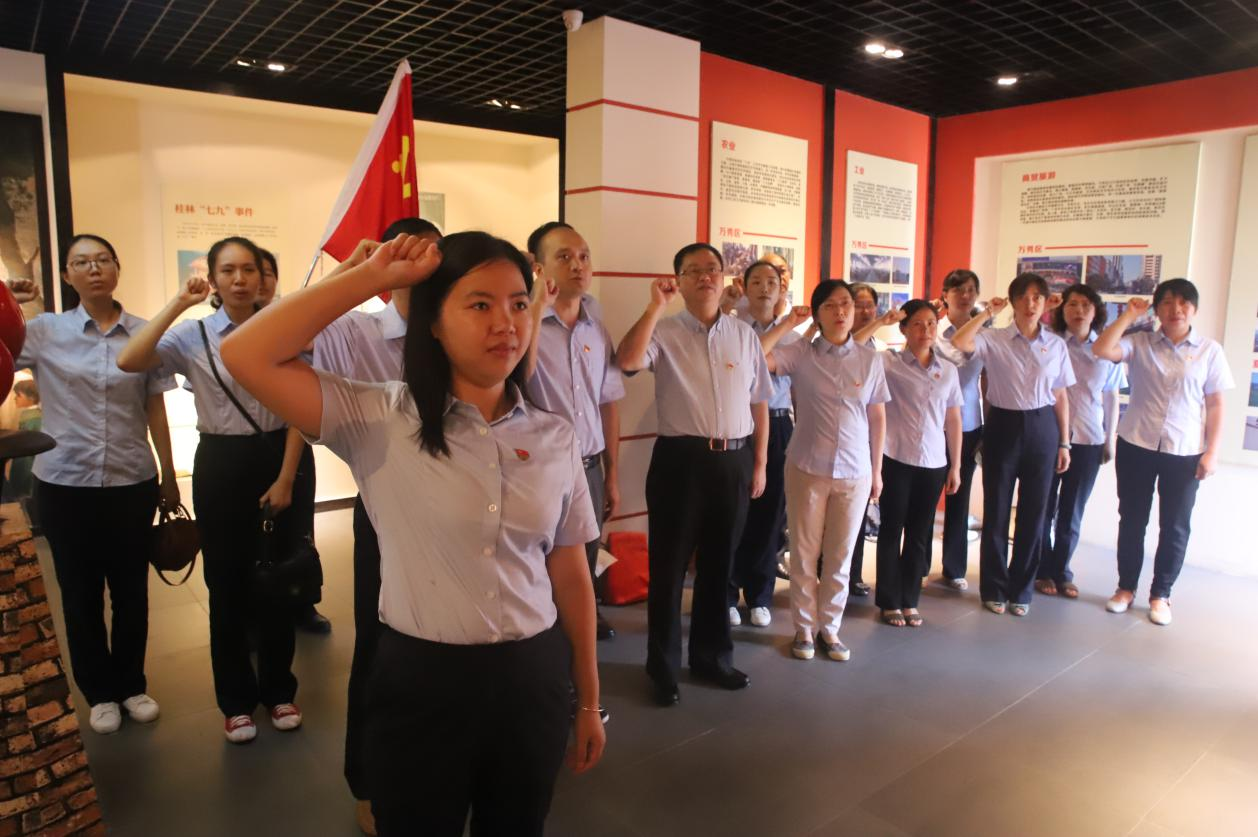 黨員們仔細聆聽解說員講解中共廣西第一個農村支部的誕生過程、在各個歷史時期的戰斗歷程、涌現出來的英雄人物以及對推動廣西革命形勢特別是桂東南地區農民運動發展的重要作用。紀念館內一張張真實的歷史圖片,一件件珍貴的實物,全景式地再現了革命先烈不屈不撓、浴血拼搏的歷史。參觀完畢,黨員們舉行宣誓活動,大家面向黨旗,舉起右手,莊嚴宣誓,重溫入黨誓詞。