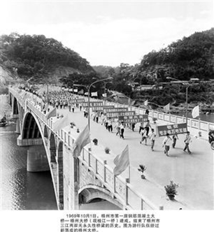 1969年10月1日,梧州市第一座鋼筋混凝土大橋——梧州大橋(現桂江一橋)建成通車,結束了梧州市三江兩岸無永久性橋梁的歷史。圖為慶祝隊伍在剛落成的桂江一橋上行走。 據說在當時物資緊缺的年代,建設梧州大橋集結了全市的勞動力,工人、農民和學生都自發地加入到建設隊伍中,通過人力彌補設備的不足。這段經歷,成為許多老梧州人一輩子的寶貴記憶。 當時的桂江一橋,還是很原始的模樣,沒有成型的綠化帶,沒有分車道行駛。2000年,31歲的桂江一橋在主、引橋拱波和主橋腹拱出現裂縫,橋面嚴重損壞。2003年,桂江一橋接受了加固維修,并將原有橋面拆除,重新澆筑混凝土,調整橋梁橫斷面布置,以增加橋身荷載力。 數年后,因東、西引橋承載力已無安全儲備,2010年10月10日至2011年5月30日,梧州市再次對桂江一橋進行了維修加固,并拓寬了橋面,橋面由原來的15米拓寬為18米,拓寬后的橋面為四車道。(請作者與本網聯系,郵箱1209366388@qq.com) 包火柴