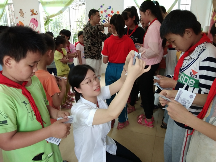在活動的最后,青年員工們還為部分學生送上作文書、練字貼、繪圖本、水彩筆等禮物,祝福孩子們能在社會的愛心關懷下,快樂健康成長!