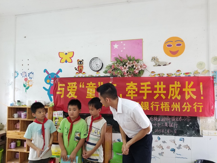 少年兒童是祖國的未來,民族的希望,關愛兒童成長也是社會各界應盡的社會責任。在第69個國際兒童節到來之際,2019年5月31日,工商銀行梧州分行的青年員工們來到蒼梧縣嶺腳鎮思泰小學,為小學生們送上兒童節的祝福。