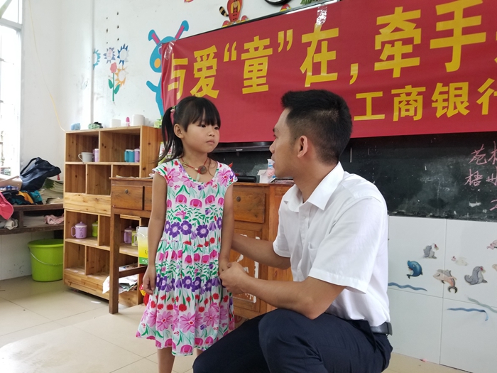 這是工商銀行梧州分行青年員工連續第二年到思泰小學與孩子們開展互動,孩子們除了興奮,更多了幾分親切感。盡管是雨天,但青年員工和孩子們的熱情不減。