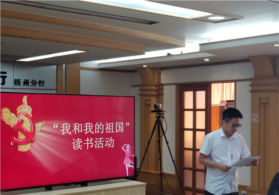 8月24日,工商銀行梧州分行舉辦“我和我的祖國”讀書活動,以推動工商銀行廣西分行“樂學善思、開放務實、擔當協作、創新進取”的特色企業文化核心理念落地深植,打造“書香工行”的全員閱讀氛圍,健全常態化學習機制,提高員工隊伍綜合素質。 活動中,青年員工結合自己閱讀過的一段文字或一本書,分享交流自己參加工作以來的體會感想、親身經歷的營銷小故事等。