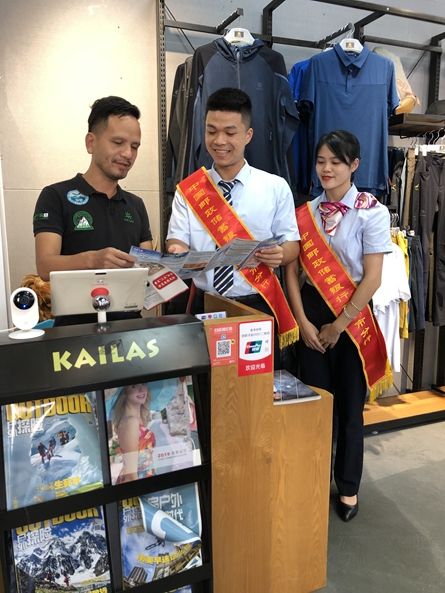 活動期間,梧州市分行安排了業務骨干分批組成宣傳小組,深入到各大商圈、大型超市、市區公園等地進行移動式金融知識宣傳。9月下旬梧州市分行、藤縣支行先后組織宣傳小組在大塘社區、上三云社區、藤縣藤州文化廣場等人流密集地,擺攤設點向過往群眾派發金融知識普及宣傳折頁,現場解說金融投資注意事項,向廣大群眾宣傳防范非法集資、人民幣知識、支付安全、網絡電信詐騙、個人信息保護等金融常識。宣傳活動得到了群眾的積極響應,他們紛紛表示“長見識了”。