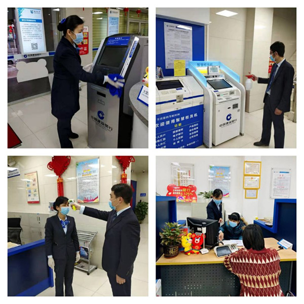 全力落實(shí)疫情防控措施 疫情防控期間,建行梧州分行營(yíng)業(yè)網(wǎng)點(diǎn)實(shí)施彈性營(yíng)業(yè),在保障金融服務(wù)的同時(shí),時(shí)刻不忘落實(shí)營(yíng)業(yè)網(wǎng)點(diǎn)的疫情防控措施。建行對(duì)外營(yíng)業(yè)的網(wǎng)點(diǎn),嚴(yán)格做到每天噴灑消毒劑,用消毒劑擦拭機(jī)具設(shè)備;營(yíng)業(yè)前對(duì)員工測(cè)量體溫,確保健康上崗;為進(jìn)入網(wǎng)點(diǎn)的客戶測(cè)量體溫,做好登記,確保金融服務(wù)安全有序;員工在營(yíng)業(yè)期間做到全程佩戴口罩為客戶提供金融服務(wù);在大堂服務(wù)臺(tái)、勞動(dòng)者港灣服務(wù)區(qū)域配備免洗酒精洗手液,便于客戶洗手消毒。