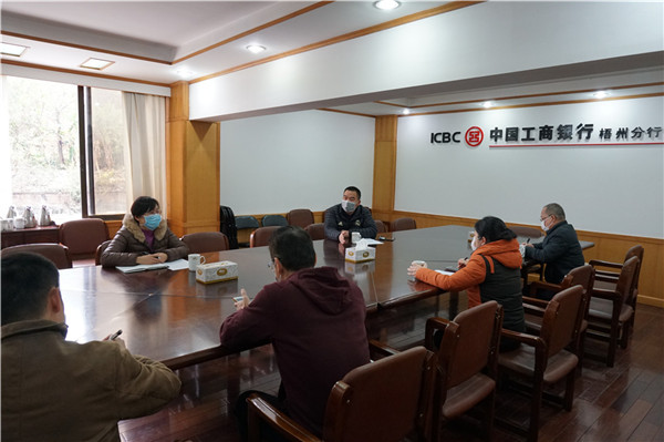 在全國人民眾志成城戰“疫”的關鍵時刻,工商銀行梧州分行將打贏疫情防控阻擊戰作為當前最大的政治任務,分行廣大黨員帶頭承擔起危重險急任務,當先鋒、作表率。 強化組織領導,堅定戰“疫”信心 按照黨中央部署及上級行黨委要求,工行梧州分行黨委迅速成立了以黨委書記、行長為組長的應對新冠肺炎疫情工作領導小組,并召開疫情防控專題會議,研究制訂本行疫情防控具體措施。領導小組要求全行務必要落實好《總行防疫期間營業網點安全提示“30條”》《防疫期間廣西分行營業網點服務工作指引》等要求,尤其要確保一線員工防疫物資到位,保障好員工及客戶的身體健康。領導小組成員多次來到營業網點,慰問疫情期間堅守工作崗位的員工,為他們加油鼓勁,并了解防疫物資配備和使用情況等。