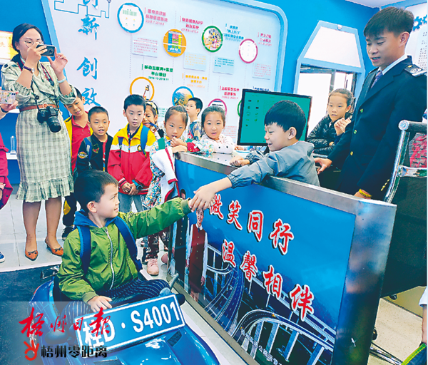 10月24日,小記者在工作人員的指導下,體驗高速公路收費站的收費流程。 當天,梧州日報社和凱萊集團聯合打造的“研學于心、成長之旅”特色系列研學活動繼續進行。市新興二路小學的小記者們走進梧州高速公路運營有限公司塘源收費站收費機電體驗館,參加高速公路安全知識研學活動。活動中,小記者學習了高速公路交通安全規則,參觀了收費機電體驗館,體驗了收費操作過程,并提高了交通安全意識。 龍天傳 麥雅淇 攝