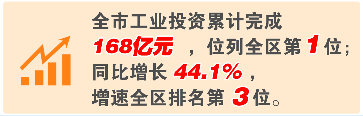 編者按: 今年以來,面對嚴峻的經濟形勢,全市上下堅決貫徹落實中央、自治區各項決策部署,在市委的堅強領導下,負重奮進,克難前行,以“起步就要提速、開局就要爭先”的攻堅姿態,全力奮戰一季度、攻堅二季度,打好“七場硬仗”,全市經濟運行持續向好向優,交出了一份浸透著汗水的合格“期中卷”。從今天開始,本報推出“年中數據看增長”系列報道,從部分主要經濟指標的增長,來展現梧州加快發展正當其勢、轉型升級恰逢其時、全面提質大有可為的態勢,敬請關注。 盛夏7月,在梧州的土地上,如火如荼的項目建設場景隨處可見,掀起工業發展的滾滾熱潮。 今年以來,我市把工業經濟發展作為主攻方向,將工業振興擺在更加突出位置,大力推進“工業振興、產業興市”,一批重大項目順利推進,工業投資持續增長,工作機制更加完善,助推全市工業經濟穩中加固,穩中向好。