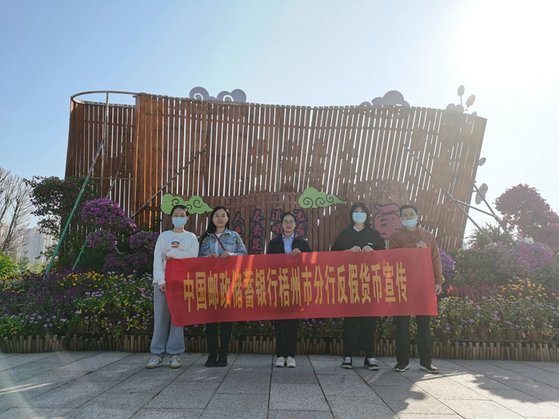 郵儲銀行梧州市分行青年員工為群眾普及金融知識。