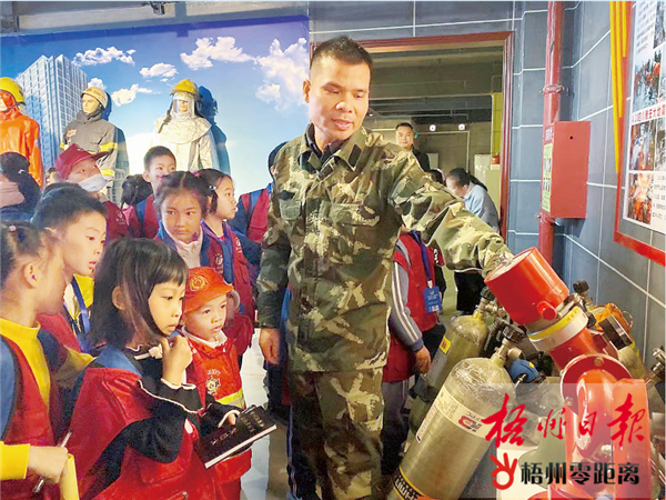 當天,梧州日報社組織40多名小記者到梧州愛國擁軍促進會消防體驗館開展研學活動。在活動中,小記者們看了各式各樣的消防設備器材和消防服,聽了消防安全知識講解,并體驗了模擬火災逃生現場,增強了火災防范意識,提高了逃生自救技能。覃競儀 攝