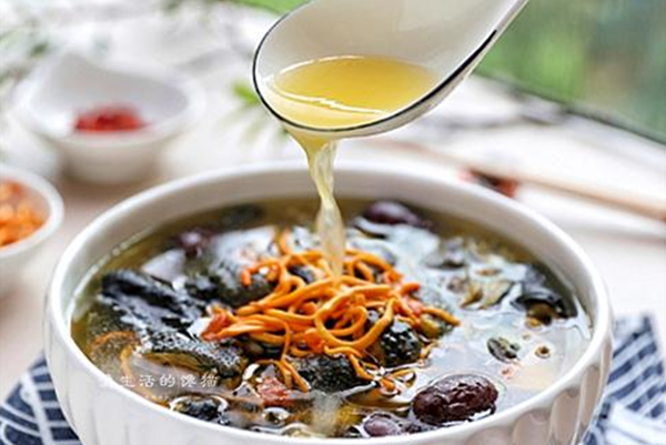 將紅棗、枸杞浸泡10分鐘撈出,蟲草花清洗干凈。烏雞砍成小塊,冷水下鍋焯水一遍撈出洗凈表面浮沫。將烏雞放入鍋里,再倒入紅棗、枸杞、蟲草花。加入適量清水,把姜片和米酒倒入鍋內,大火煮沸后轉小火燜煮40分鐘即可出鍋。