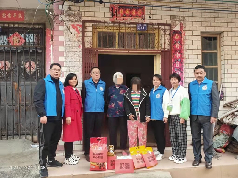 在“兩節”即將到來之際,為做好殘疾人走訪慰問工作,讓轄區殘疾人過上一個歡樂、祥和、溫暖的春節。12月24日,中共新華人壽保險股份有限公司貴港梧州中支聯合支部攜手梧州市興龍街道殘聯、梧州市毅德社區組成愛心慰問組,來到毅德社區進行走訪慰問,為困難家庭送關懷。
