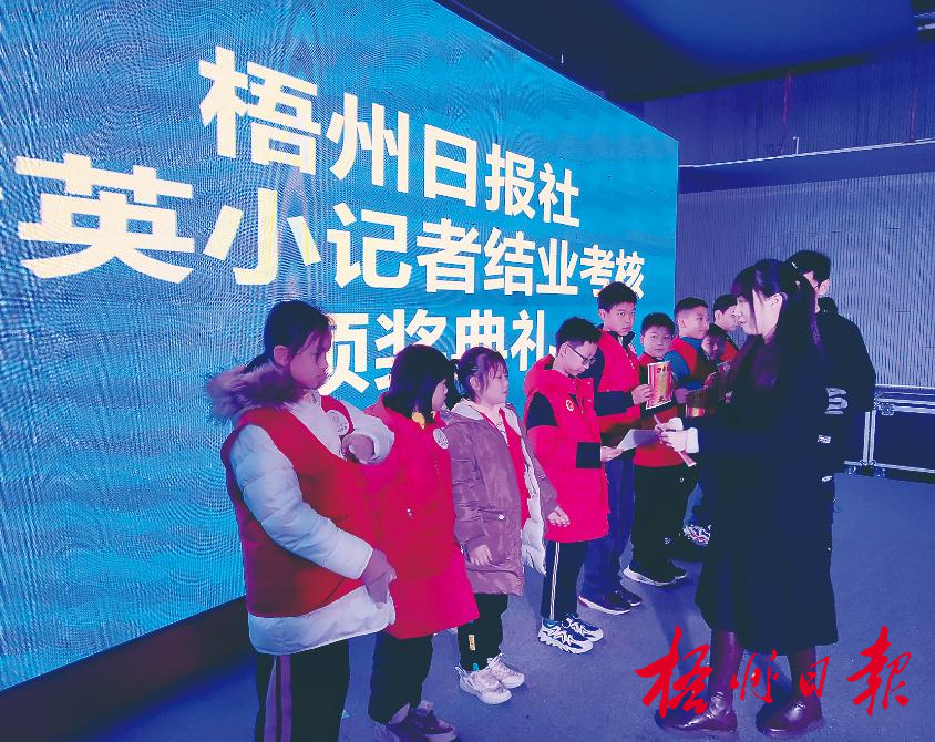 根據儀容儀表、表達能力、情感溝通等方面綜合評定,6名小記者獲得一等獎,9名小記者獲得二等獎,13名小記者獲得三等獎,評委老師給獲獎的小記者一一頒獎。其中,小記者鄧雅馨憑借出色的表現獲得了一等獎。參加梧州日報社精英小記者成長訓練營后,她深深地體會到,要當好一名小記者,除了要練好筆頭功夫,還要鍛煉口頭表達能力。“在研學老師帶領下,一堂堂生動的語言藝術培訓讓我受益匪淺,我會更加努力地去學習,以一名優秀小記者的標準要求自己。”鄧雅馨說。