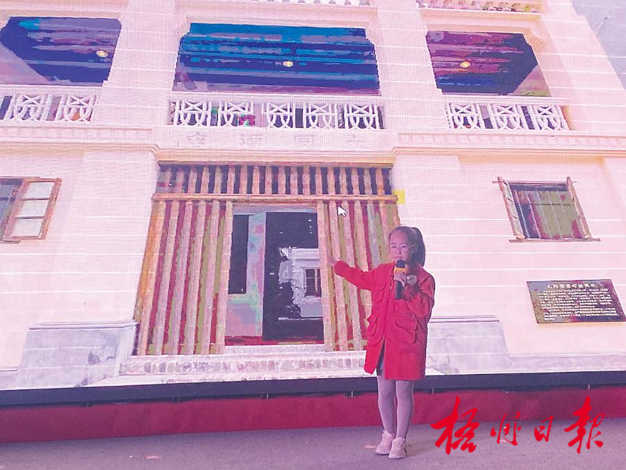 根據歷史照片,小記者繪聲繪色地講述梧州故事。