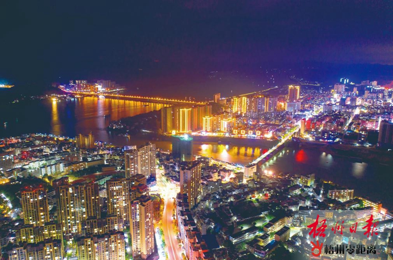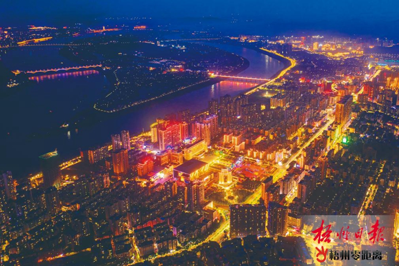 夜幕降臨,華燈初上,梧州各地霓虹閃爍,如同繁星散落人間,美輪美奐,繽紛絢爛——