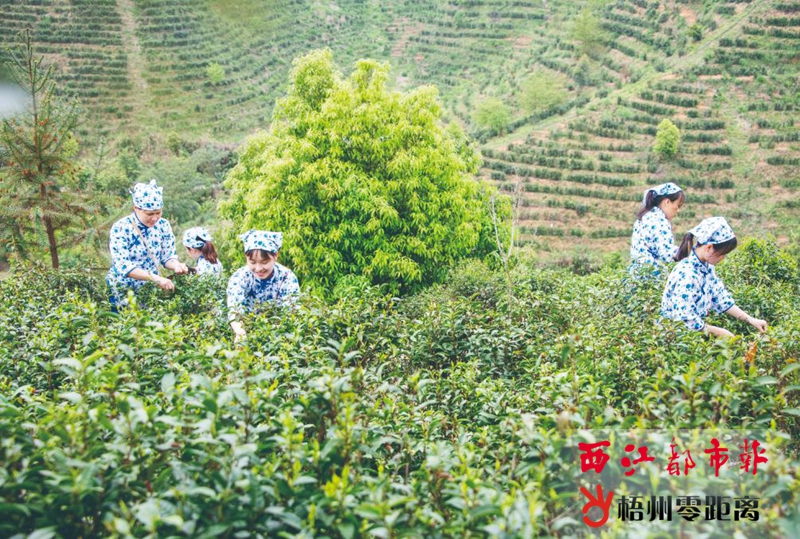 六堡茶產業既是綠色產業,也是富民產業。在新時代推動梧州六堡茶產業高質量發展,是落實習近平生態文明思想的具體行動,是推進鄉村振興的具體措施,其時已至、其勢已成。梧州市充分發揮“原產地、原種茶、原工藝”三原優勢,圍繞“茶苗、茶園、茶企、茶師、茶市、茶城”六個關鍵環節,全力推進六堡茶產業高質量發展,把梧州六堡茶產業打造成為廣西茶產業的“半壁江山”。2021年,梧州市有茶園18.2萬畝,年產六堡茶2.5萬噸,綜合產值約110億元。何華文 攝