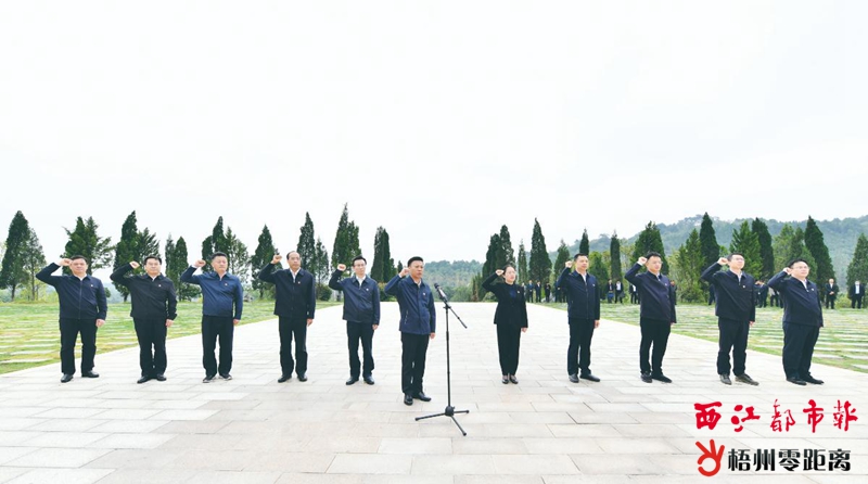 “勇于勝利、勇于突破、勇于犧牲”的湘江戰役精神是長征精神的重要組成部分,是我們黨戰勝艱難險阻,不斷取得勝利的寶貴財富。2021年10月14日下午,市委書記蔣連生、市長鐘暢姿率領市四家班子領導,來到桂林全州縣紅軍長征湘江戰役紀念園,向湘江戰役紅軍烈士敬獻花籃,重溫入黨誓詞,從湘江戰役中汲取再長征的偉大力量,進一步強化狠抓落實、加快發展的思想共識,著力在工業強市、生態立市、文旅旺市、作風興市上下功夫,努力跑出高質量發展加速度,在新一輪發展浪潮中實現新跨越新突破。記者 李鴻榮 攝
