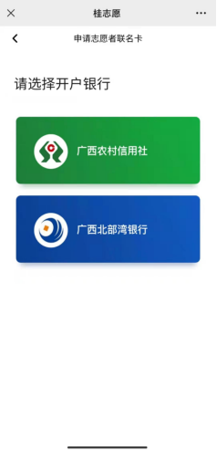 五、申請成功后,借記卡需到所選擇的銀行網點領取;貸記卡經銀行驗簽、審批后,由發卡方郵寄到所填寫的地址,志愿者收到實體卡后可自行激活。