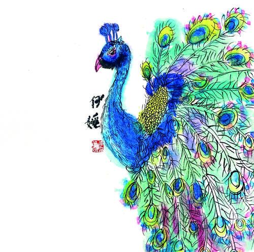 孔雀開屏蒼梧縣旺甫鎮中心校五年級1班 李伊媛繪