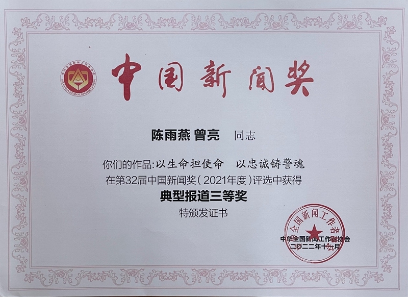 圖2:年度優(yōu)秀新聞作品獲第32屆中國(guó)新聞獎(jiǎng)典型報(bào)道三等獎(jiǎng)